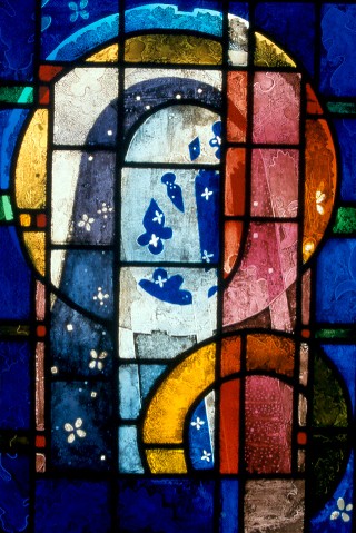 50cm x 72cm Etched, painted and stained Antique glass and lead Private house: East Anglia